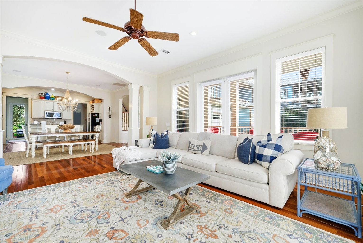 Bright, airy, and full of coastal charm—our main living space is perfect for group gatherings.