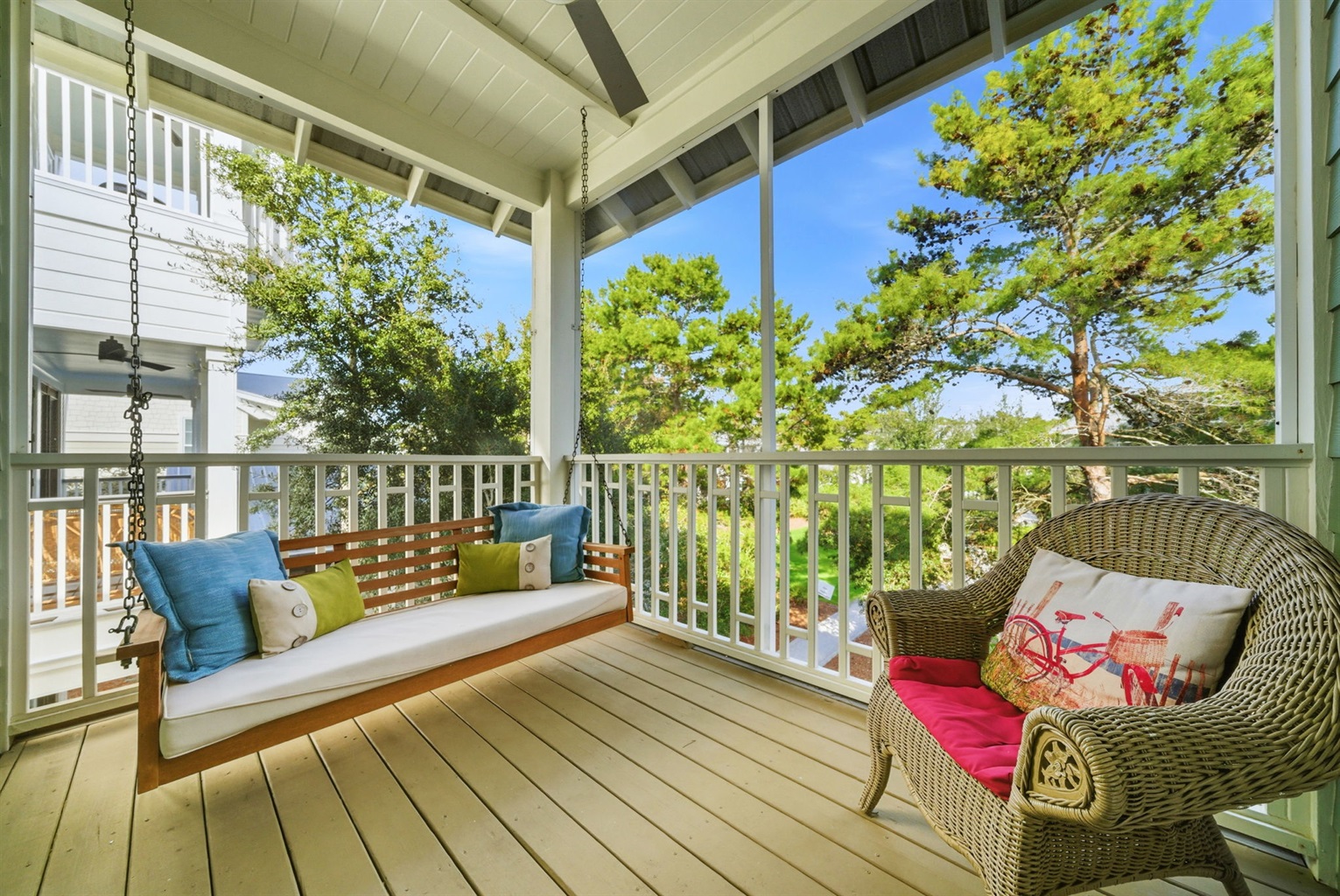 The ultimate relaxation spot: curl up with a book on the porch swing and enjoy the view.